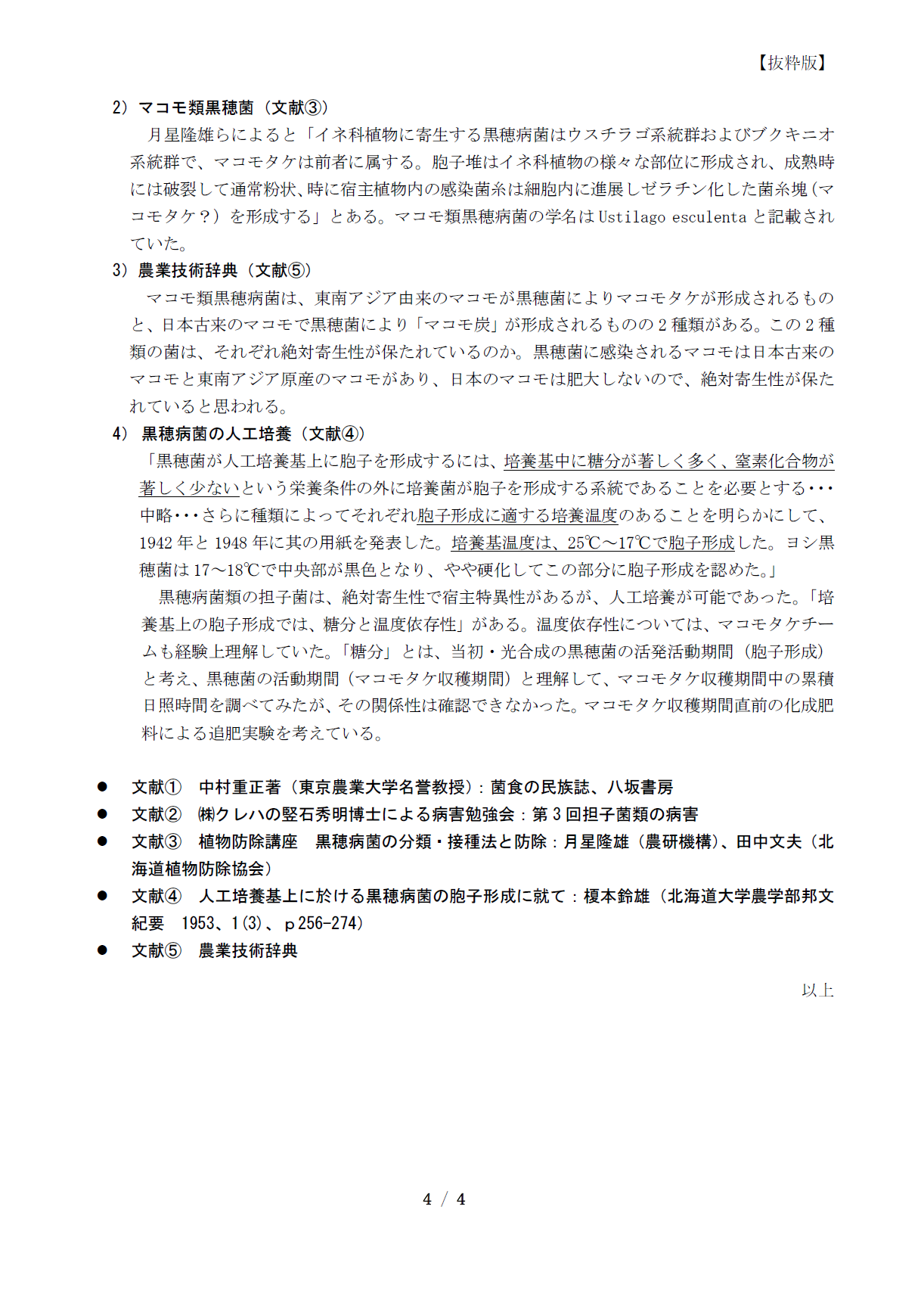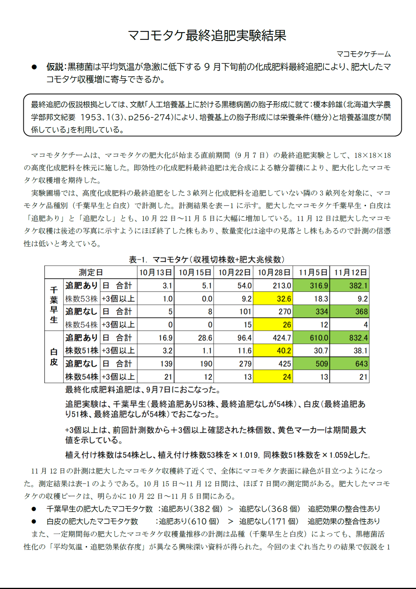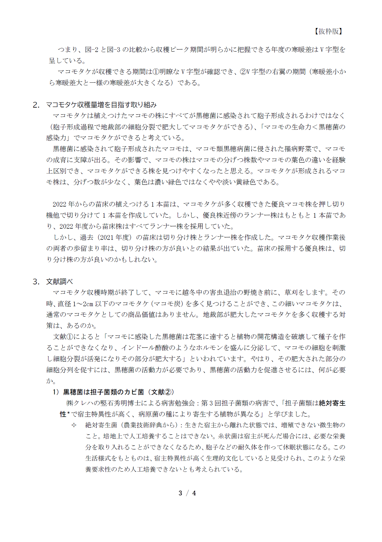 【補足】本報告は抜粋版です。完全版を御覧になりたい場合は、マコモタケチーム宛にお問い合わせ下さい。