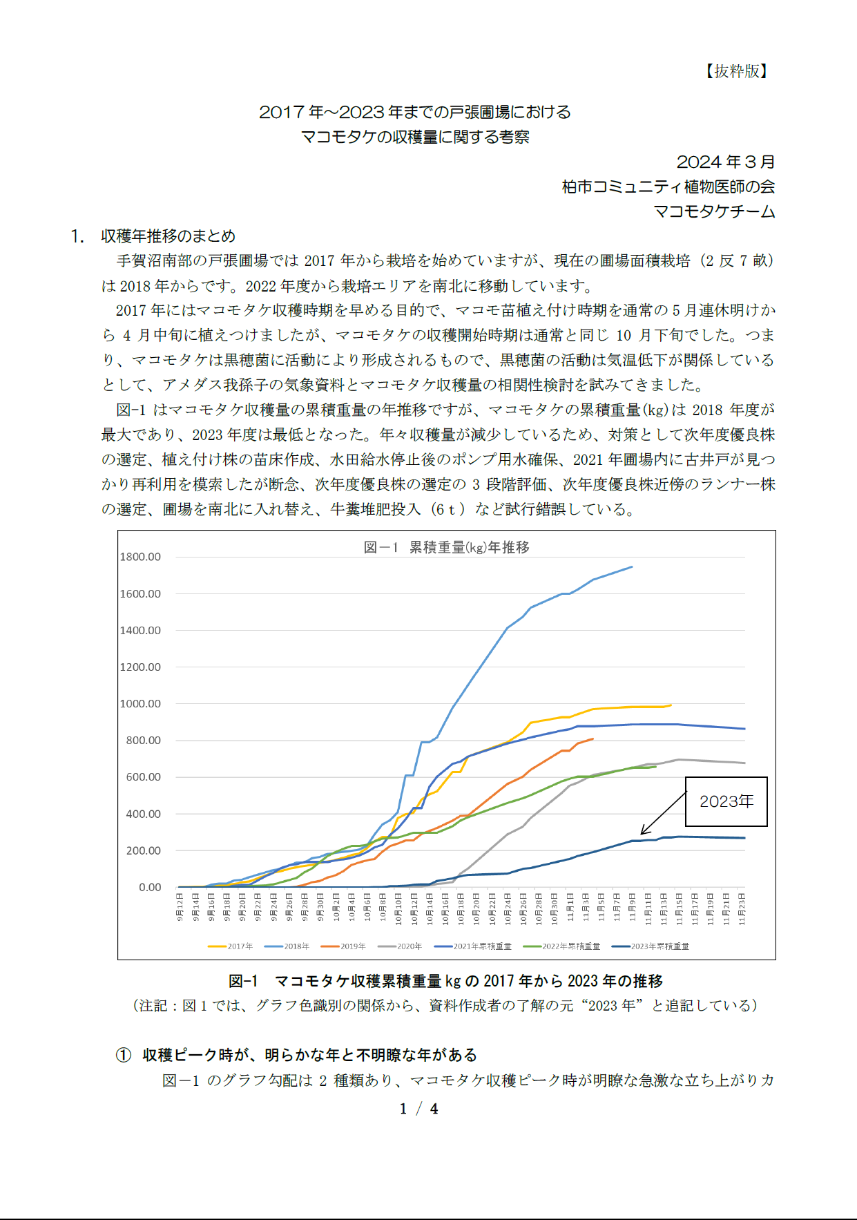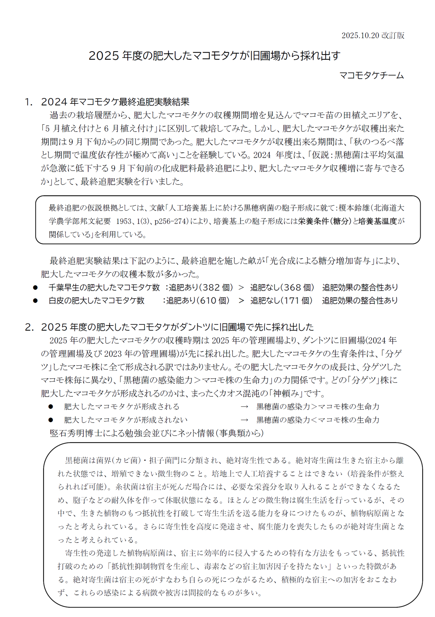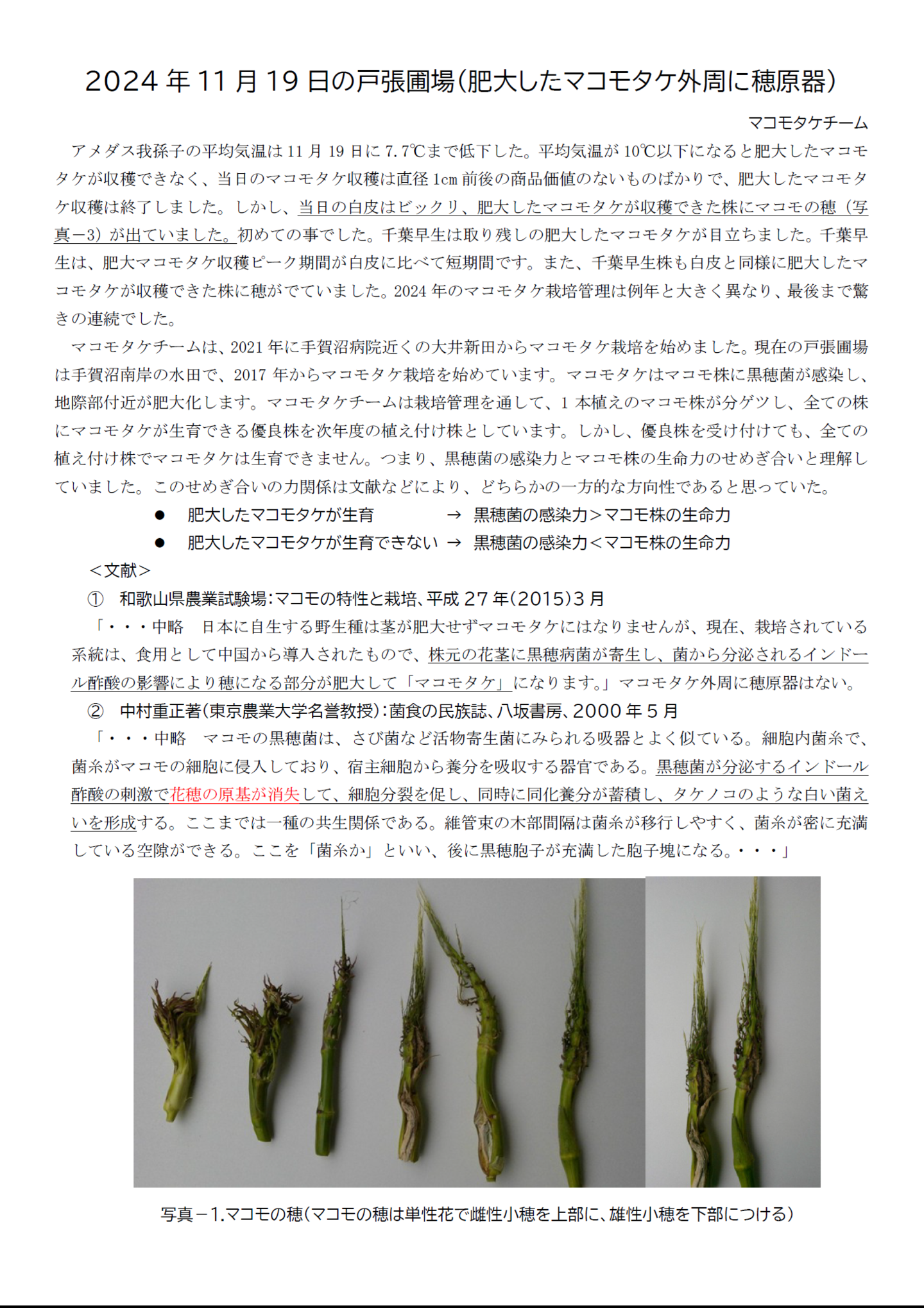 【補足】本報告は抜粋版です。完全版を御覧になりたい場合は、マコモタケチーム宛にお問い合わせ下さい。