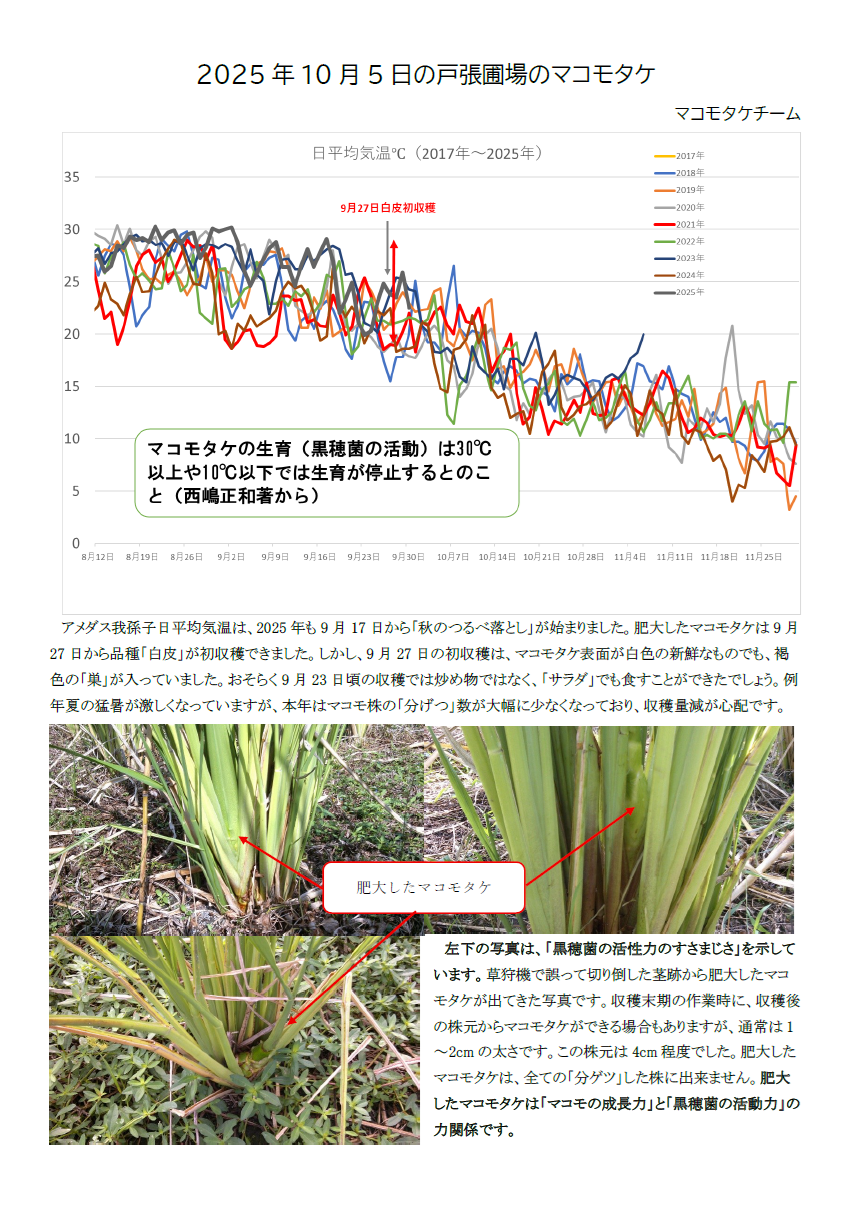 戸張圃場のマコモタケ情報です。(2025年10月5日現在)