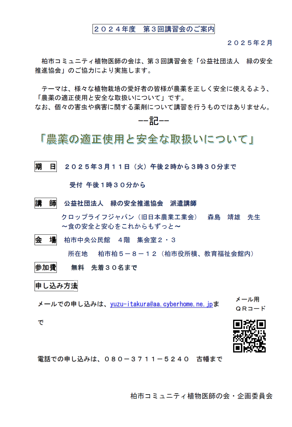 『農薬の適正使用と安全な取扱いについて』に申し込みます。